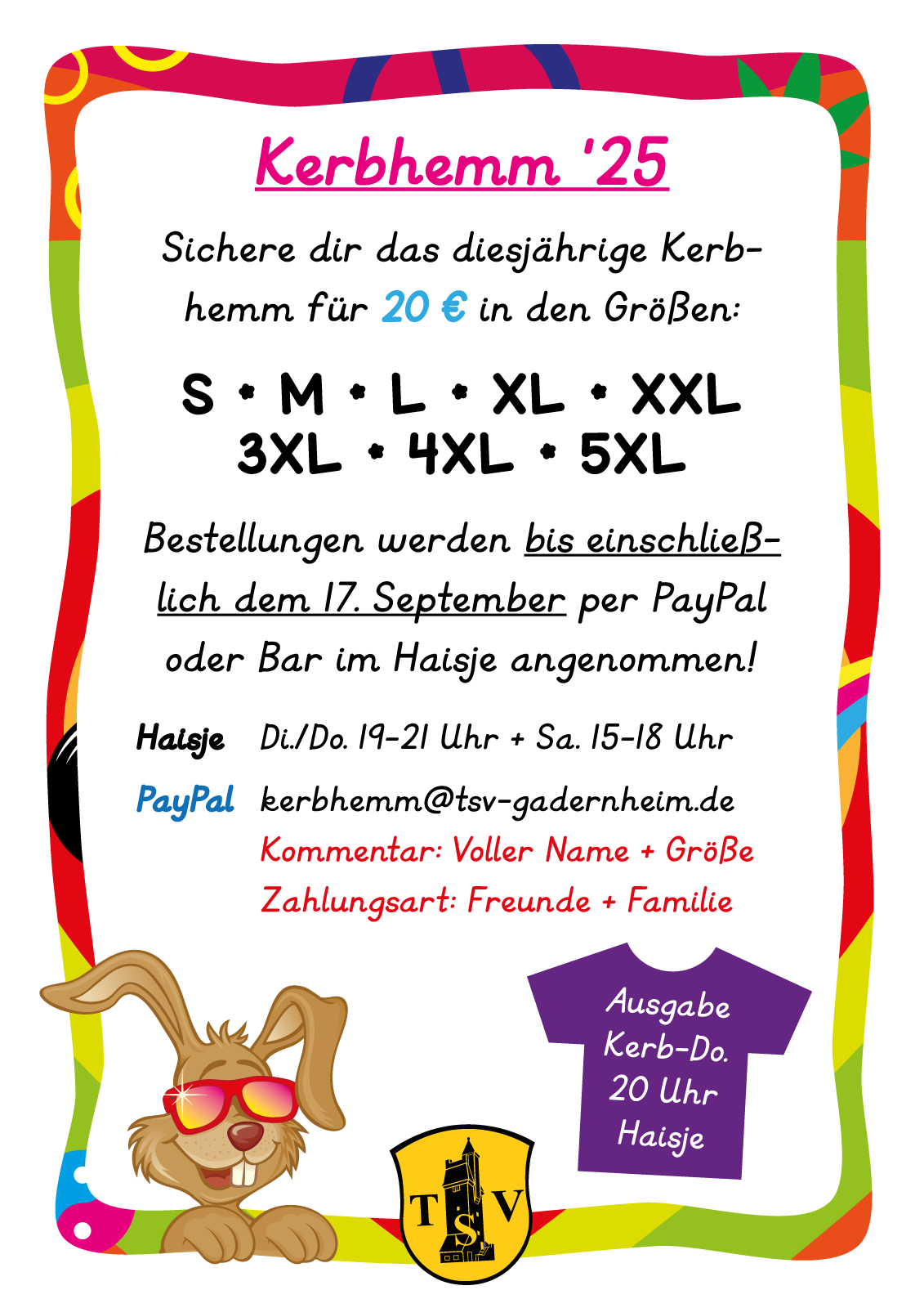 Los geht's nun im September mit der Bestellung des Kerbhemms.
